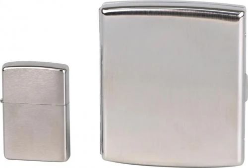 Org.ZIPPO + Zigtt.-Etui Chrom Gebürstet In Geschenk-Set – Etui Aus Messing Mit Bügel