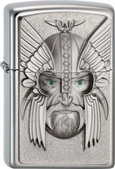 Original ZIPPO Chrome Poliert Plakette „Green Eyed Viking“