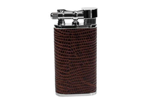 Flamme und extra großem Messingtank. Mit geprägtem Rindleder bezogen.