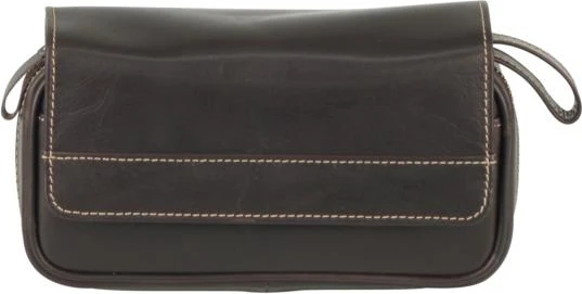 Pfeifentasche Leder Braun Mit Überschlag 3er Mit Beiger Steppung