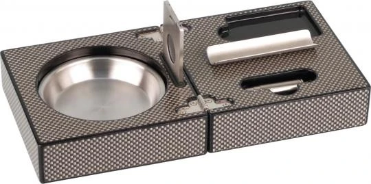 Cigarren-Set „Carbone Finish mit Ascher, Cutter und Rundcutter“