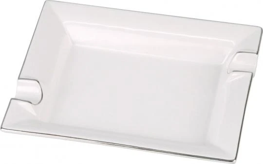 Zigarrenascher Porzellan Weiß/Silberrand